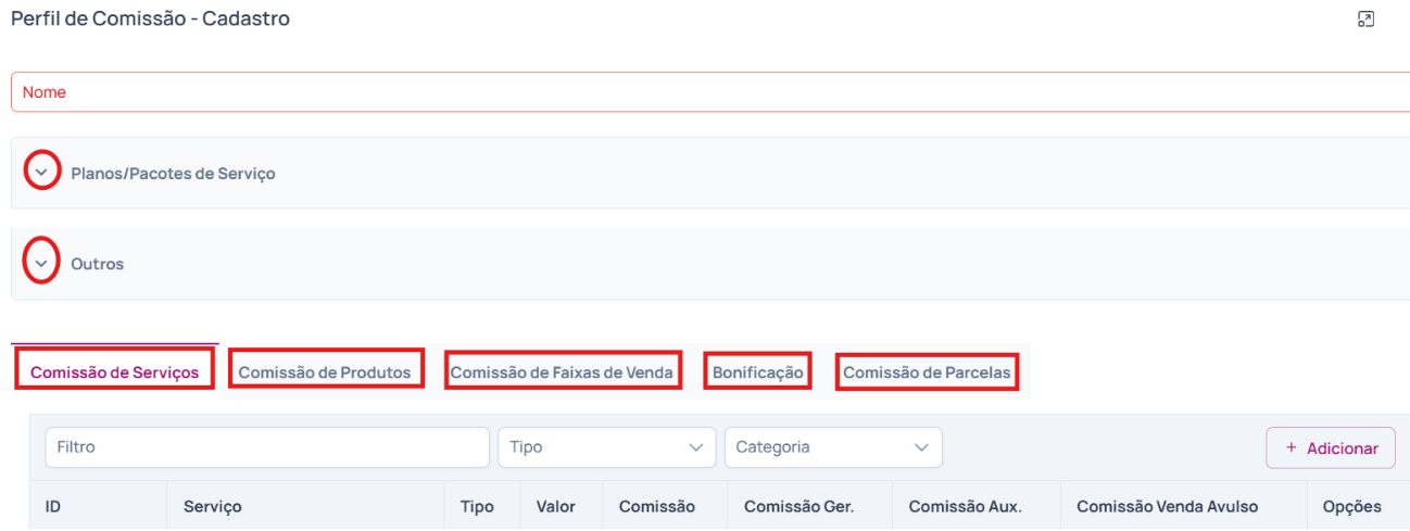 - Informar o valor de comissionamento de cada serviço em cada perfil;