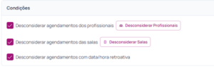 Desconsiderar agendamentos dos profissionais: nessa parametrização você pode informar sobre quais profissionais não deseja que os lembretes sejam enviados.