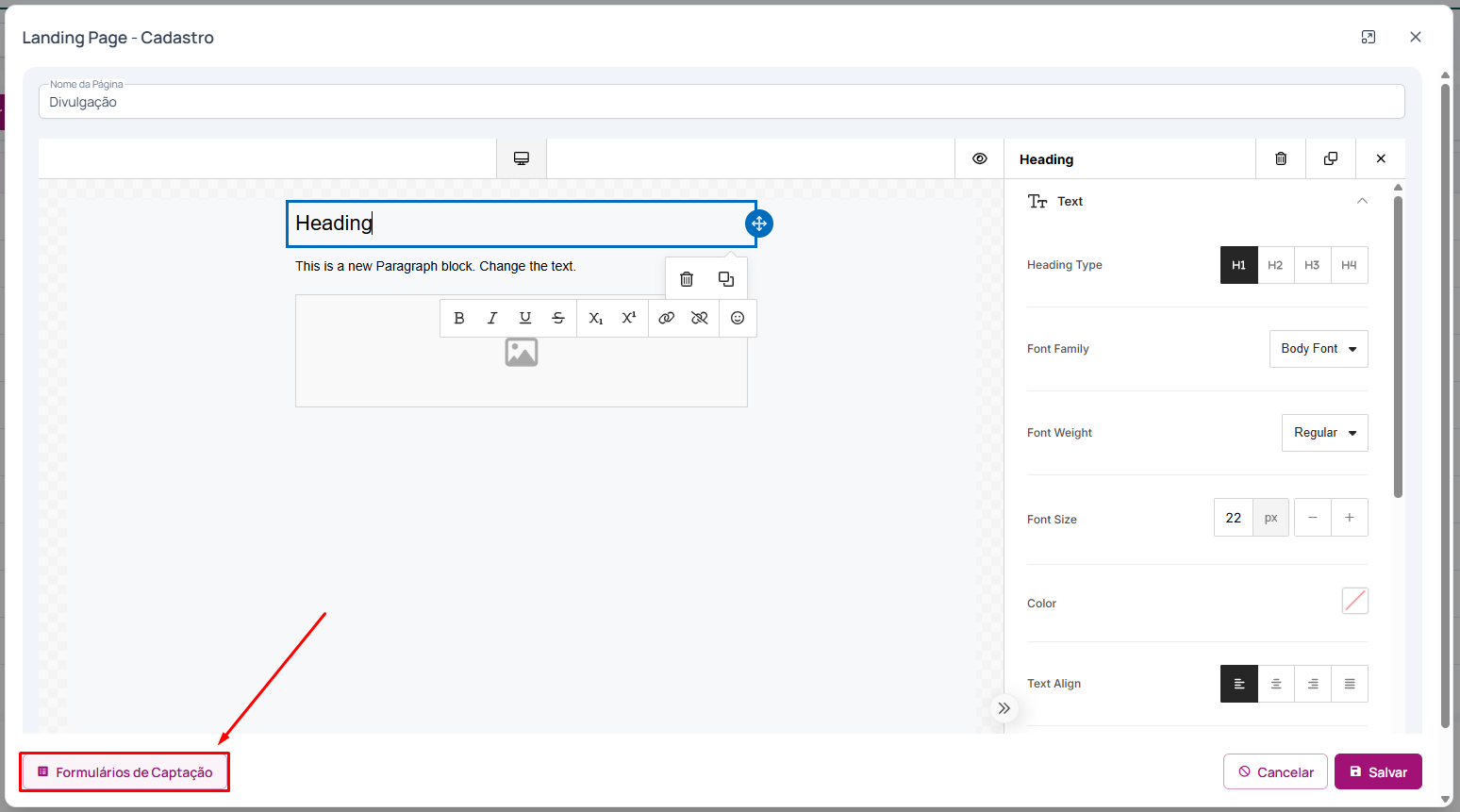 Existe a possibilidade de utilizar em sua página um formulário de captação do Belle Software e assim potencializar a sua captação de leads, deixando a captação ligada com o CRM do sistema: