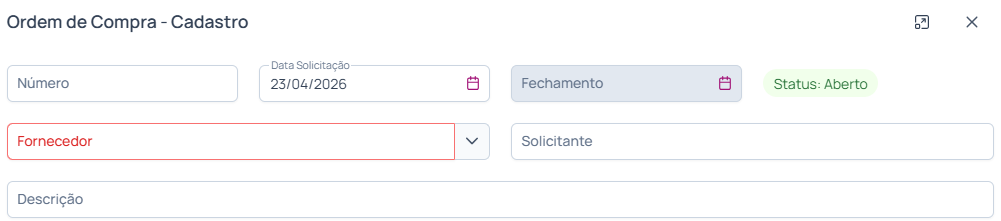 Ao abrir o programa Ordem de compra, você verá a interface abaixo: