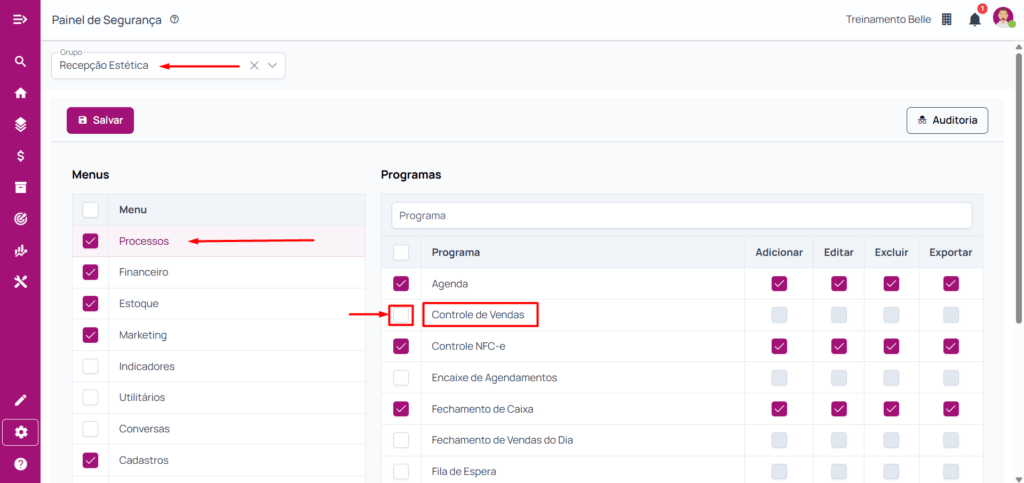 Neste tutorial será explicado como parametrizar o software de estética para restringir que o usuário tenha acesso a dados financeiros de clientes. Dessa forma, no programa para clínica de estética Belle Software, você tem a possibilidade de permitir que apenas os usuários que precisam dessa permissão, tenham o acesso.