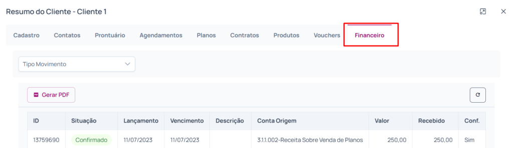 Para que o usuário tenha acesso a essa guia, precisa ter acesso ao programa “Controle de Contas a Receber” ou ao programa “Controle de Vendas”.