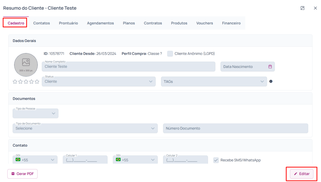 Restringir Edição do Cadastro de Clientes